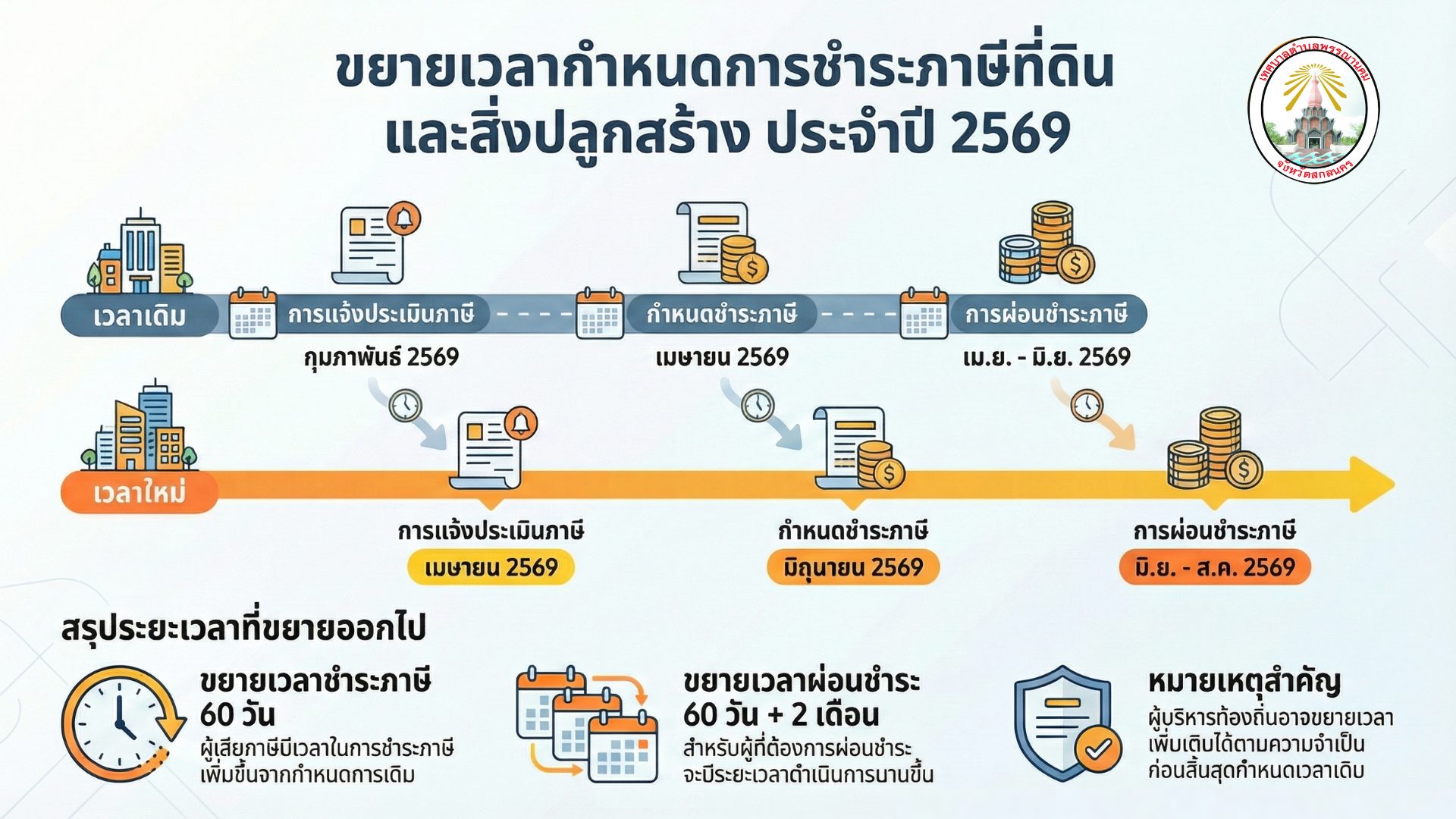 Posted in ข่าวประชาสัมพันธ์ ประกาศเทศบาลตำบลพรรณานิคม เรื่อง ขยายเวลากำหนดการชำระภาษีที่ดินและสิ่งปลูกสร้าง ประจำปี 2569 admin ประกาศขยายเวลาชำระภาษี