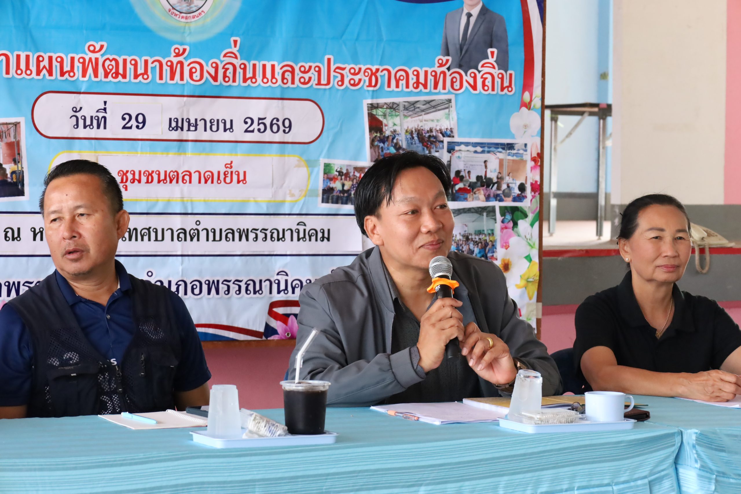#ประชาสัมพันธ์เทศบาลตำบลพรรณานิคม📢 วันพุธที่ 29 เมษายน พ.ศ. 2569 ดร.สุวัฒน์ สื่อกลาง นายกเทศมนตรีตำบลพรรณานิคม พร้อมคณะผู้บริหารฯ และพนักงานเทศบาลตำบลพรรณานิคม ได้จัดโครงการจัดทำแผนพัฒนาท้องถิ่น และประชาคมท้องถิ่น ชุมชนตลาดเย็น ณ หอประชุมเทศบาลตำบลพรรณานิคม ตำบลพรรณา อำเภอพรรณานิคม จังหวัดสกลนคร โดยมี สมาชิกสภาเทศบาลตำบลพรรณานิคม เข้าร่วมโครงการในครั้งนี้ด้วย