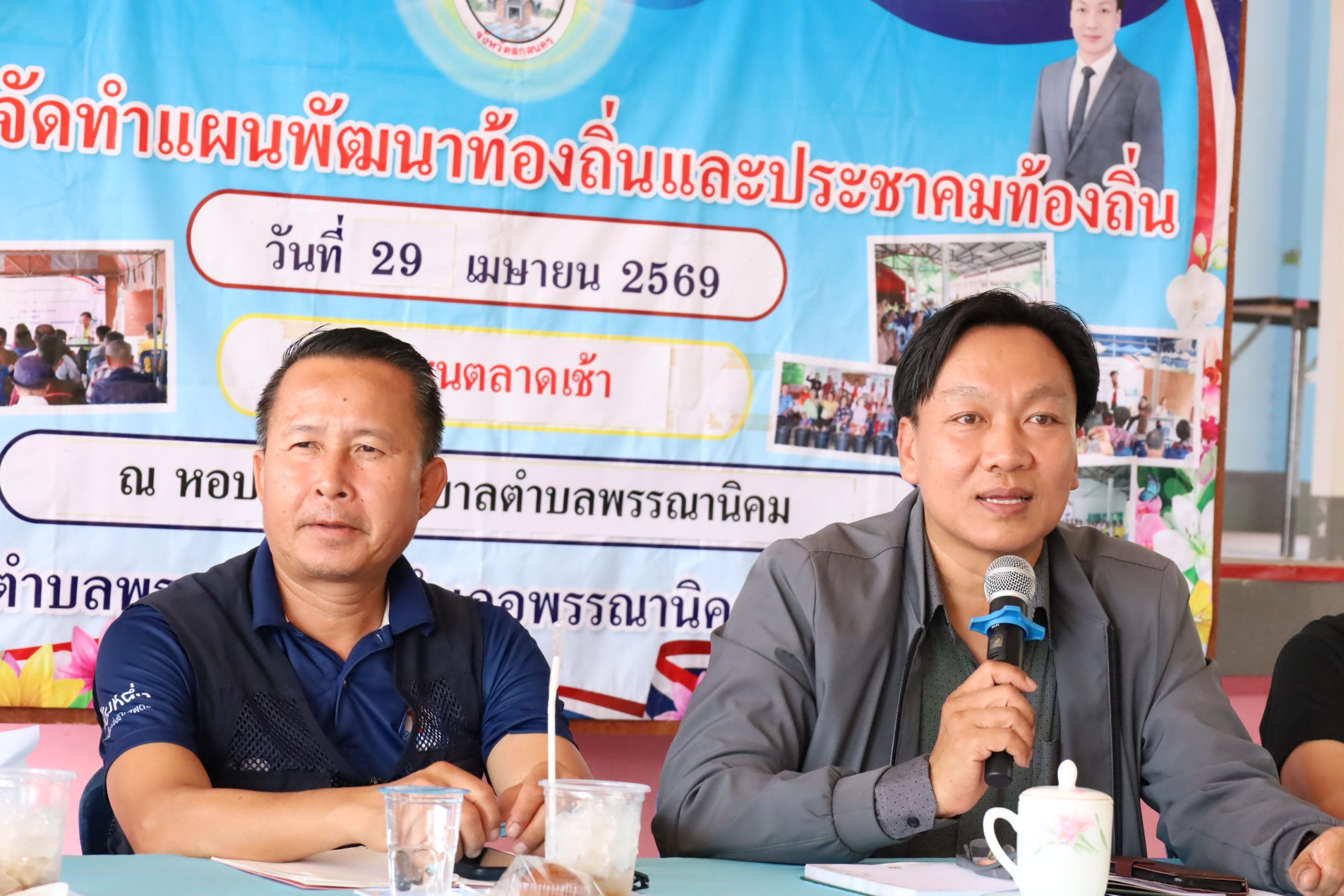 #ประชาสัมพันธ์เทศบาลตำบลพรรณานิคม📢 วันพุธที่ 29 เมษายน พ.ศ. 2569 ดร.สุวัฒน์ สื่อกลาง นายกเทศมนตรีตำบลพรรณานิคม พร้อมคณะผู้บริหารฯ และพนักงานเทศบาลตำบลพรรณานิคม ได้จัดโครงการจัดทำแผนพัฒนาท้องถิ่น และประชาคมท้องถิ่น ชุมชนตลาดเช้า ณ หอประชุมเทศบาลตำบลพรรณานิคม ตำบลพรรณา อำเภอพรรณานิคม จังหวัดสกลนคร โดยมี สมาชิกสภาเทศบาลตำบลพรรณานิคม เข้าร่วมโครงการในครั้งนี้ด้วย
